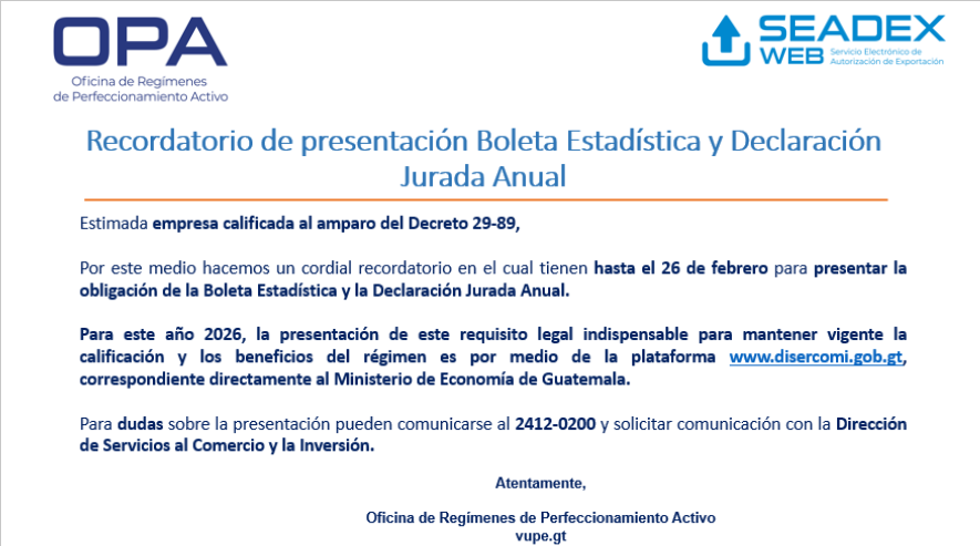Quedan pocos días: Recordatorio de presentación Boleta Estadística y Declaración Jurada Anual